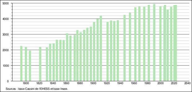 Prvi podaci o broju stanovnika odnose se na 1793. godinu, kada ih je bilo 2.243. Jedino je u istoriji popis 1806. godine zabeležio manje od 2.000 stanovnika, bilo ih je 1953. Broj stanovnika se povećavao do 1911. godine, kada ih je prvi put bilo preko 4.000, tačnije 4.181. Posle I svetskog rata dolazi do pada broja stanovnika, da bi tek popis 1946. godine ponovo zabeležio preko 4.000 stanovnika, tačnije 4.249. U poslednjih 60 godine broj stanovnika se malo menjao, rekordna je bila 1990. godina sa 4.941 stanovnikom. 2022. godine zabeleženo je 4.887 stanovnika ili 210 stanovnika/km2. Glavni grad opštine je Port-Joinville na severoistočnoj obali.