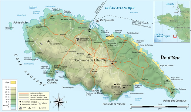 GPS koordinate: 46°43′36″ N, 2°24′33″ W.
