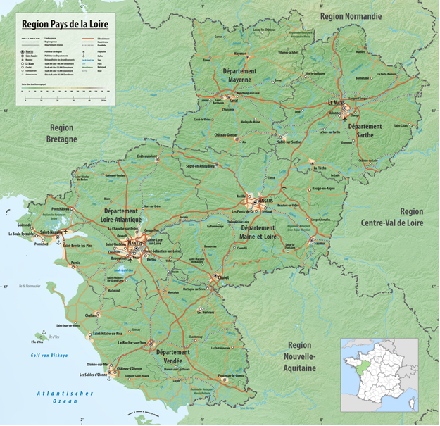 – departmana Loire-Atlantique (Atlantska Loara) koji je deo istorijske provincije Bretanje i koji čini otprilike 20% te istorijske provincije. Ostalih 80% se nalazi u regionu Bretanji.